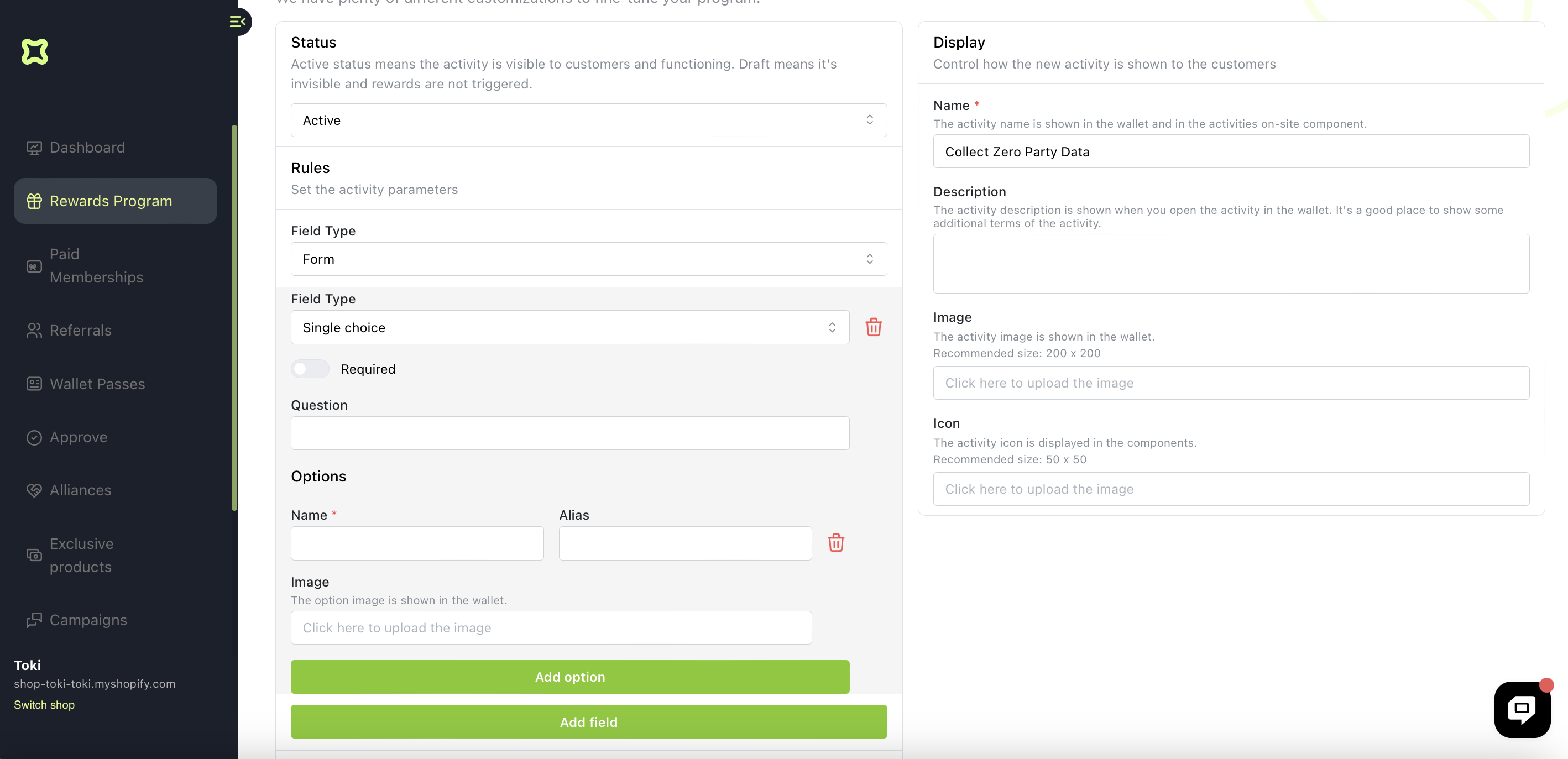 Merchants now have the ability to select fields are required or not at the question level when creating a Zero Party Data reward activity
