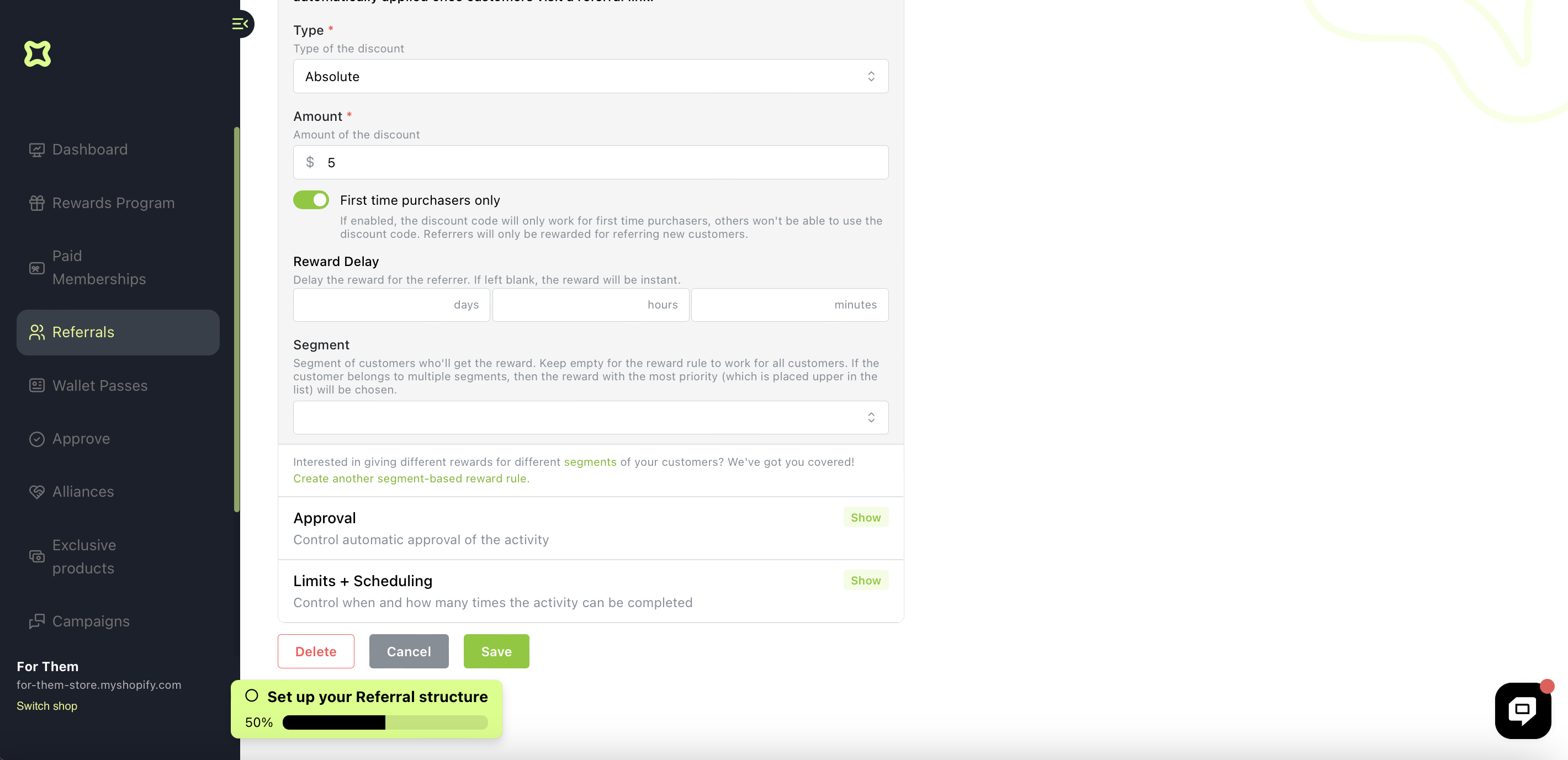 Merchants can now add a delay to the referral so that the referral does not officially happen until a certain number of days after the purchase is complete