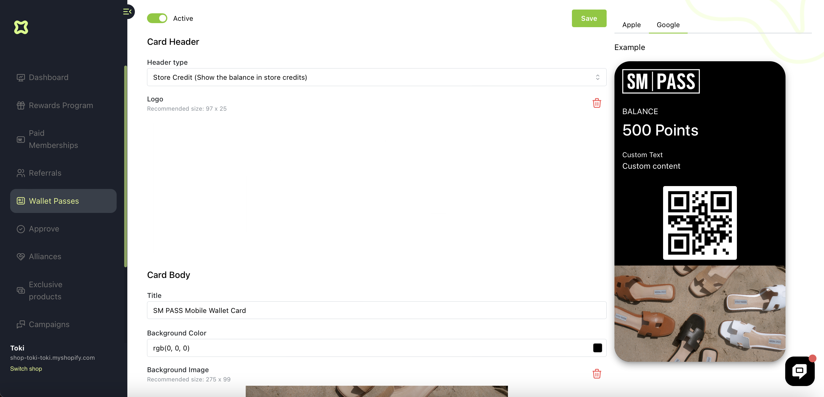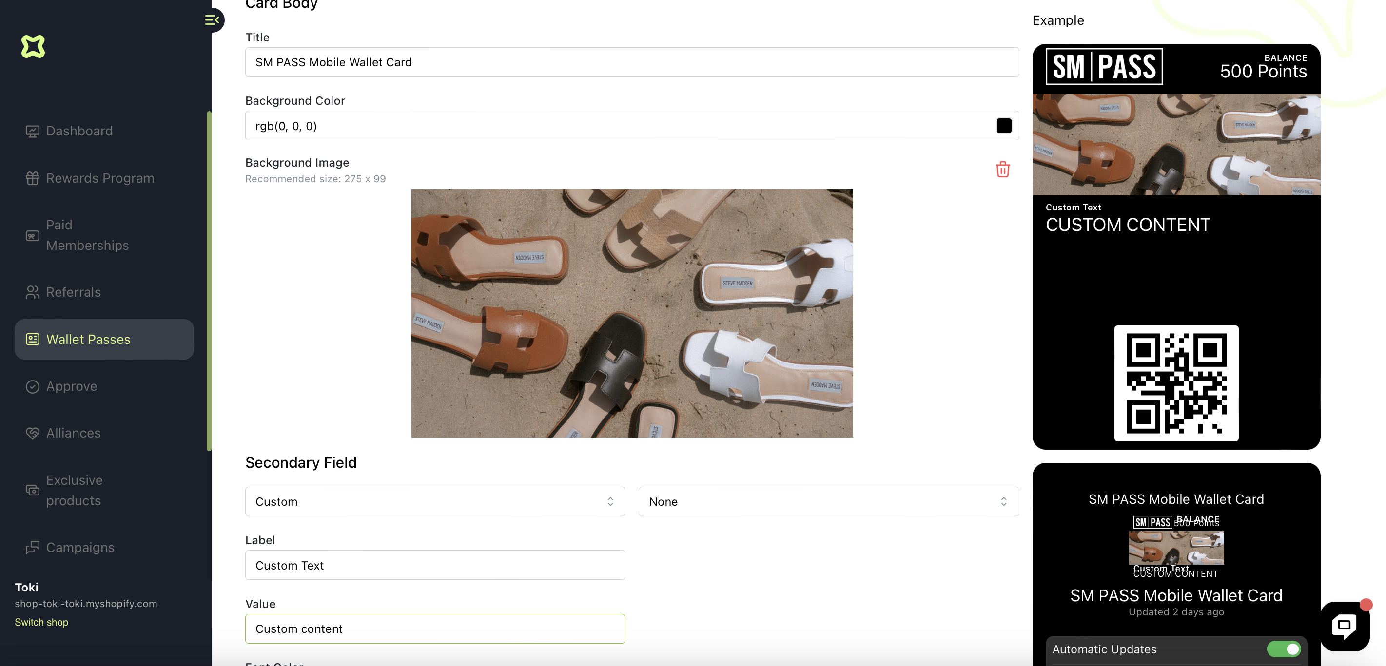 Merchants can now add custom text in one of the three fields on the Apple/Google wallet pass.