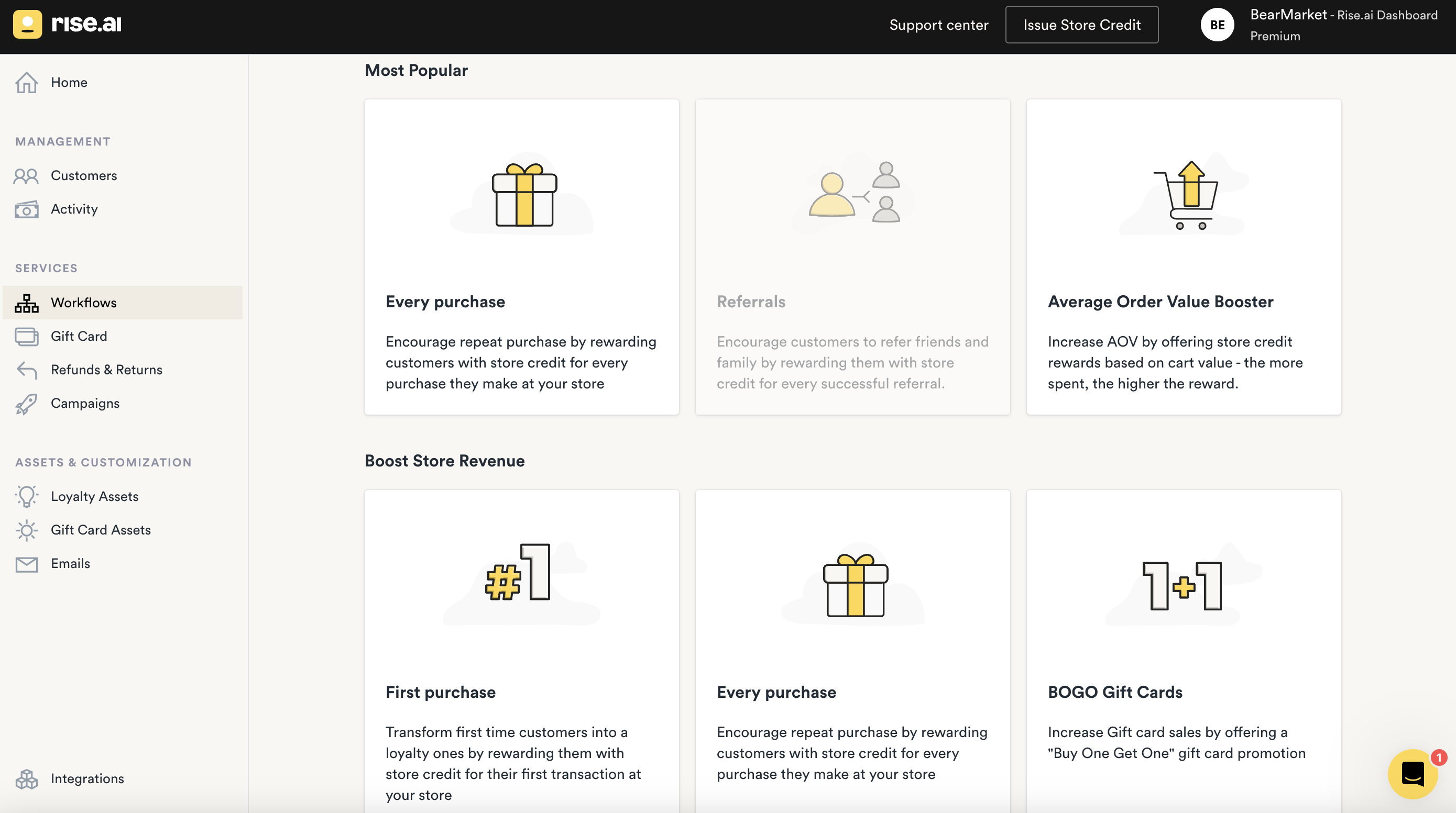 - Rise has very few integrations as they are focused mainly on gift cards