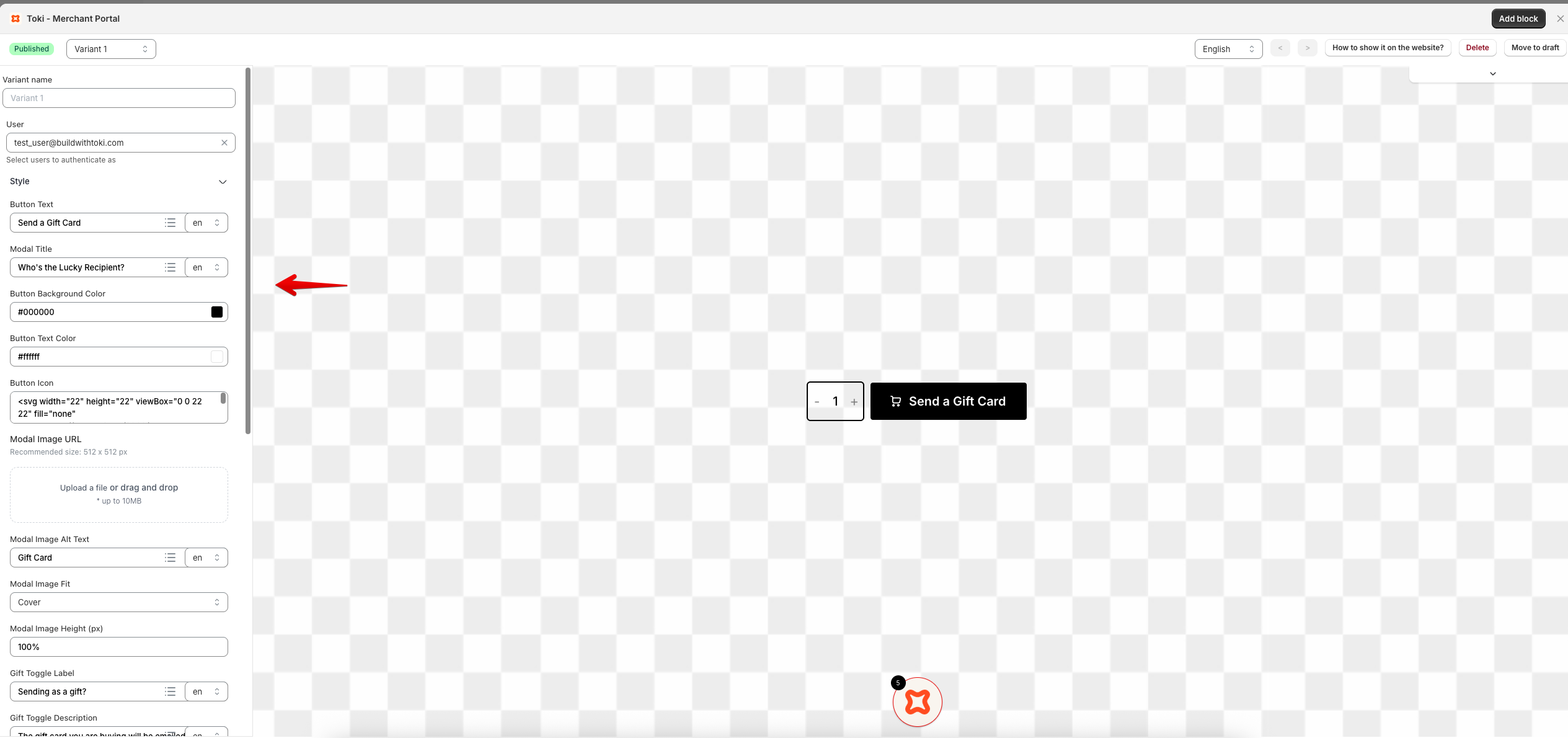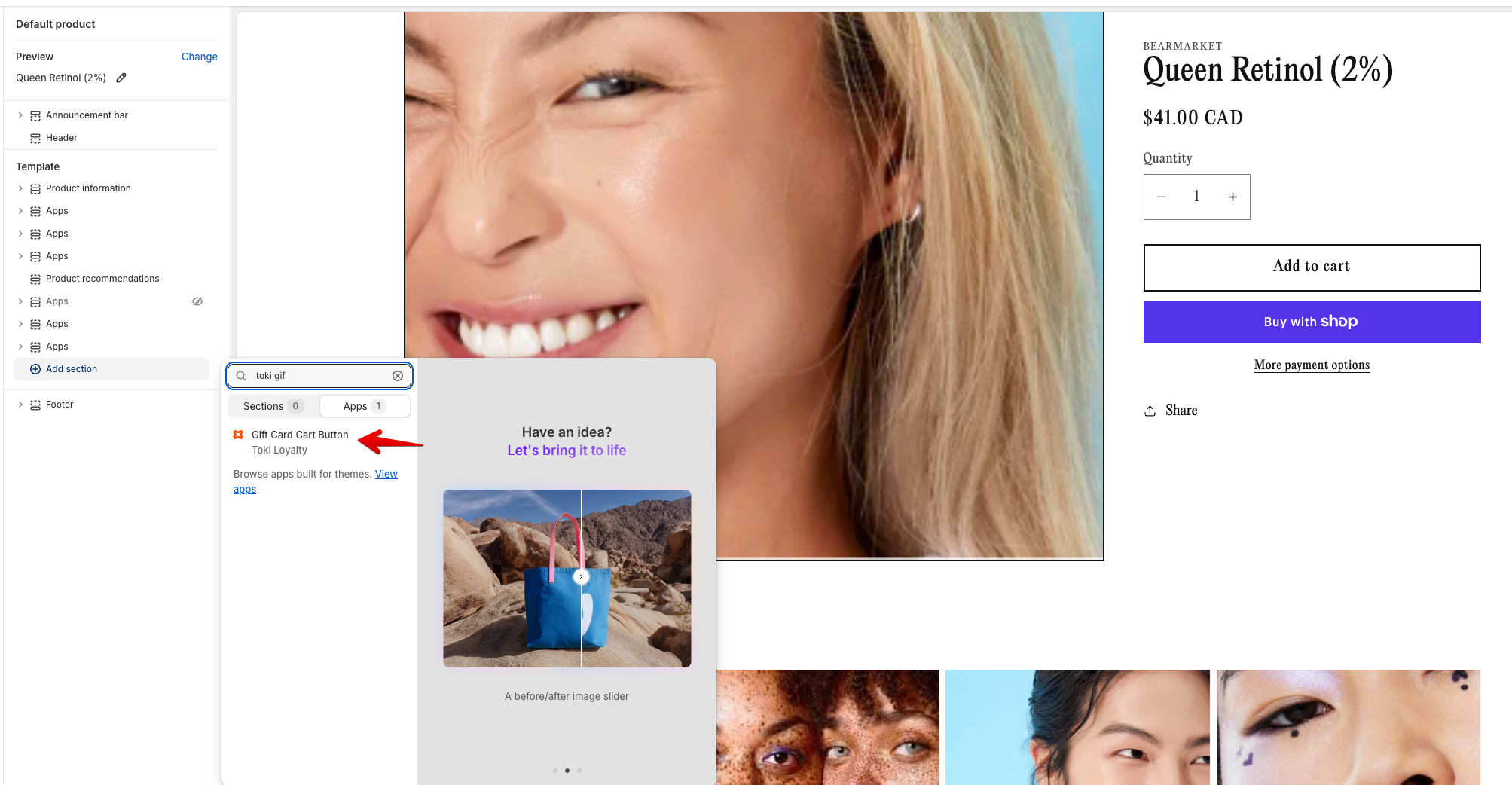 3. When you’re ready to publish the gift card button, you can add this button to your new product template.